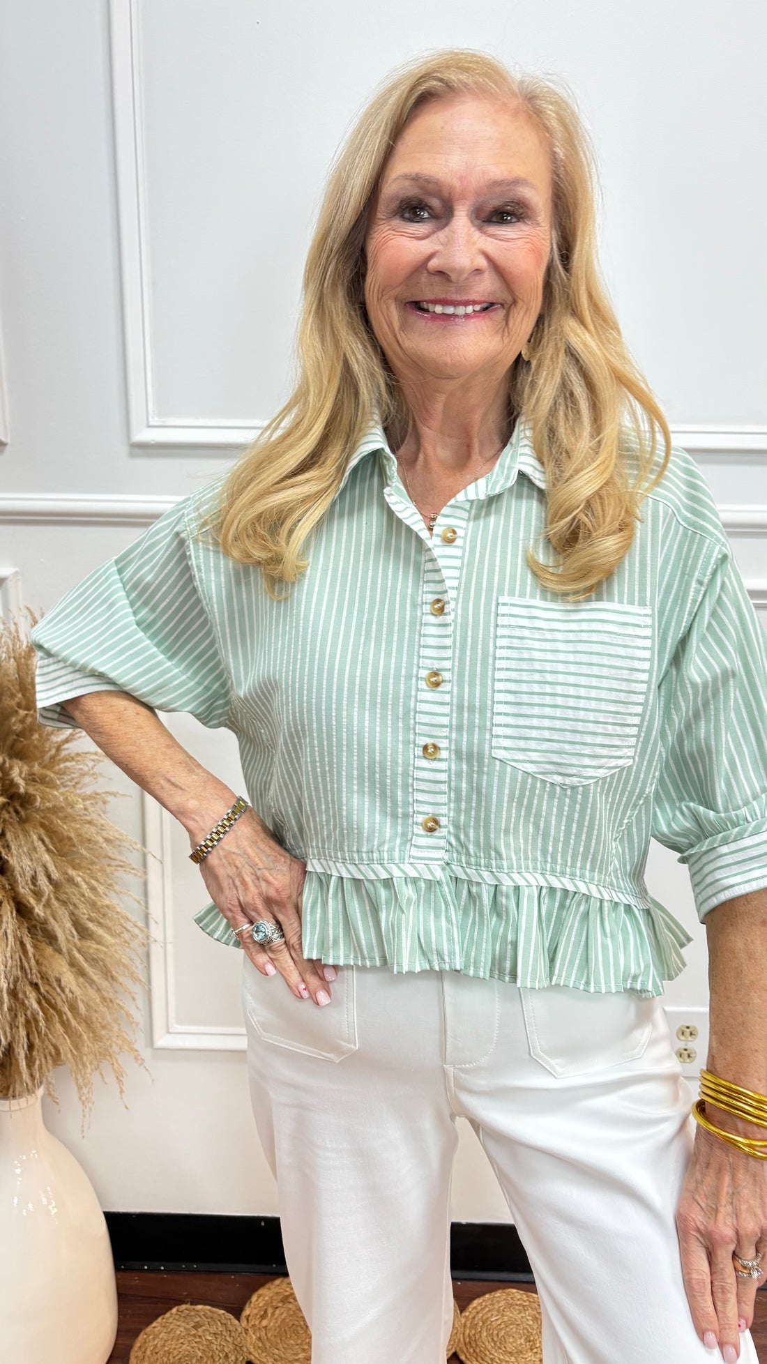 Sage Breeze Striped Peplum By Eesome
