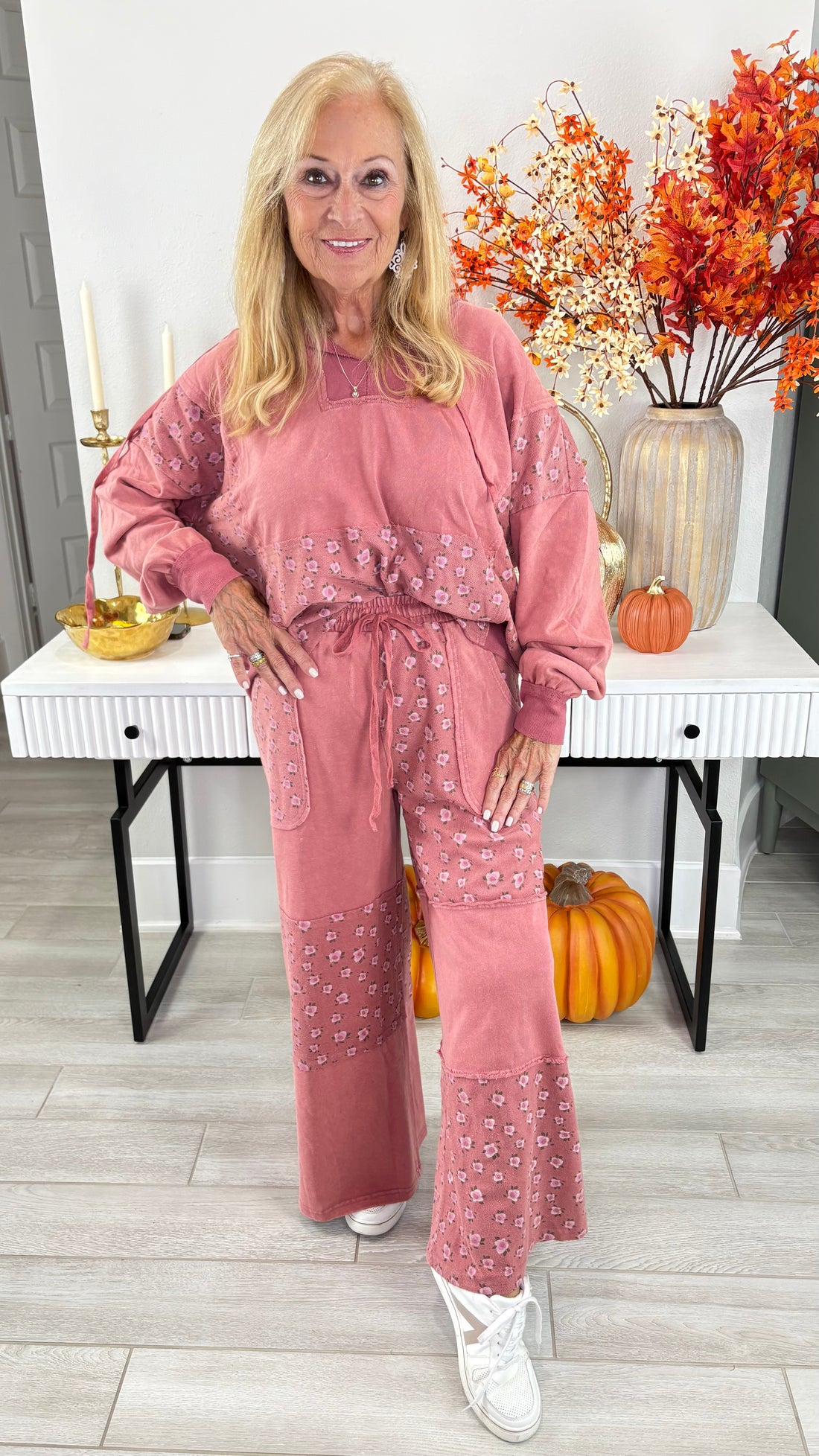 Floral Printed Washed Terry Hoodie Pullover By Easel
