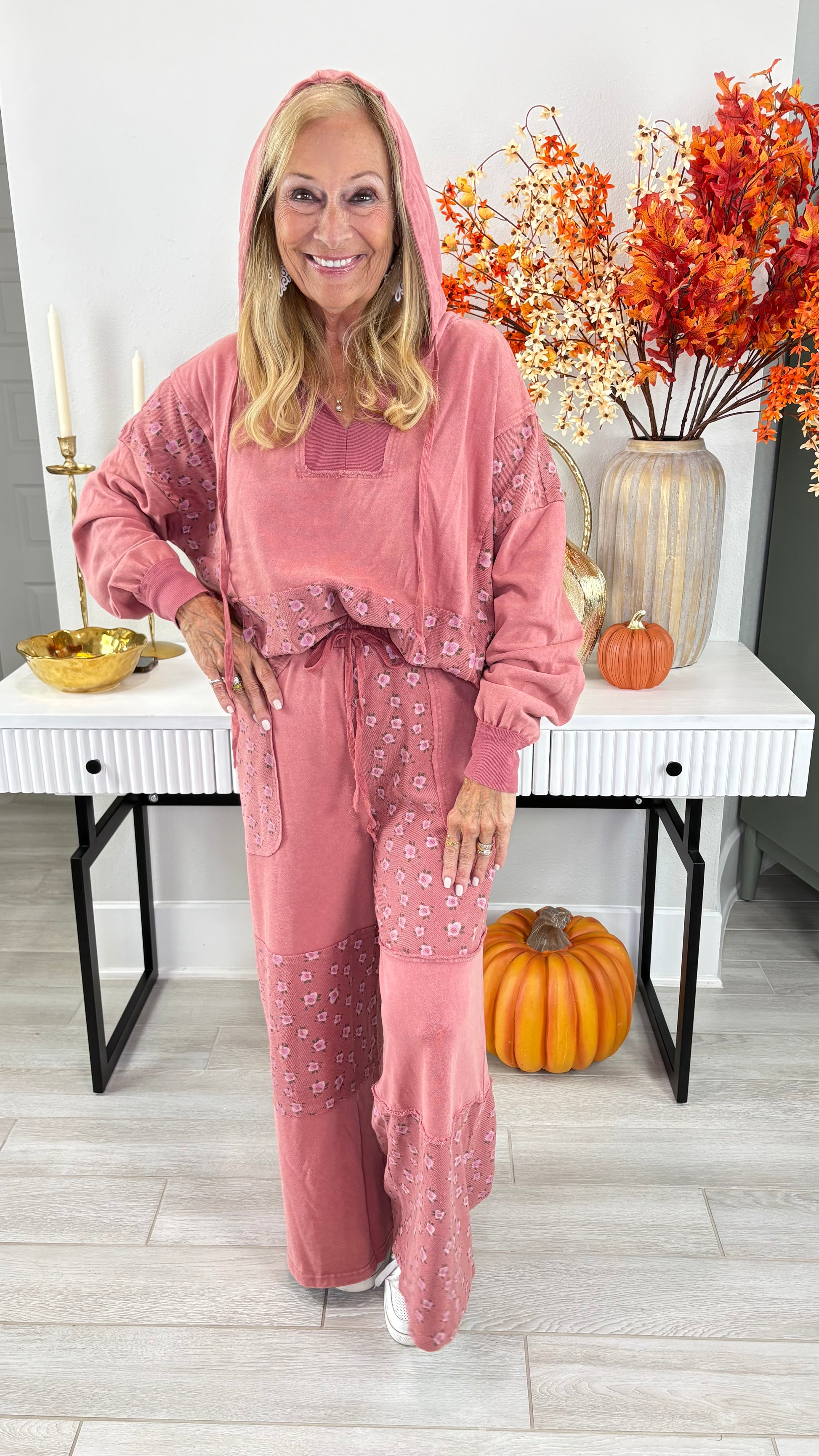 Floral Printed Washed Terry Hoodie Pullover By Easel